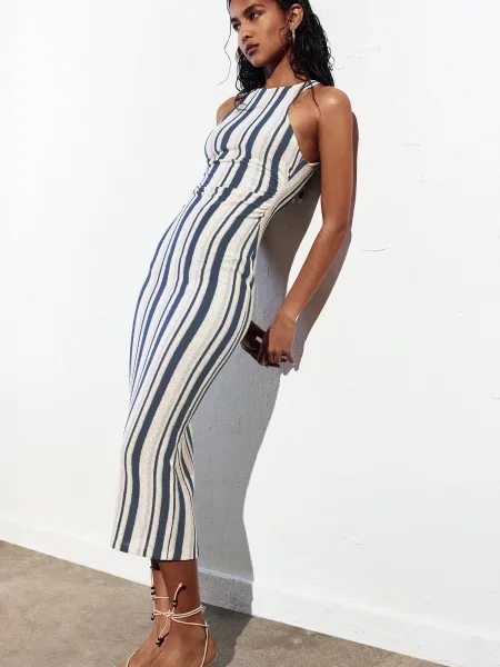 Pull&bear Rochie tricotat ecru / bleumarin / albastru deschis / deschis