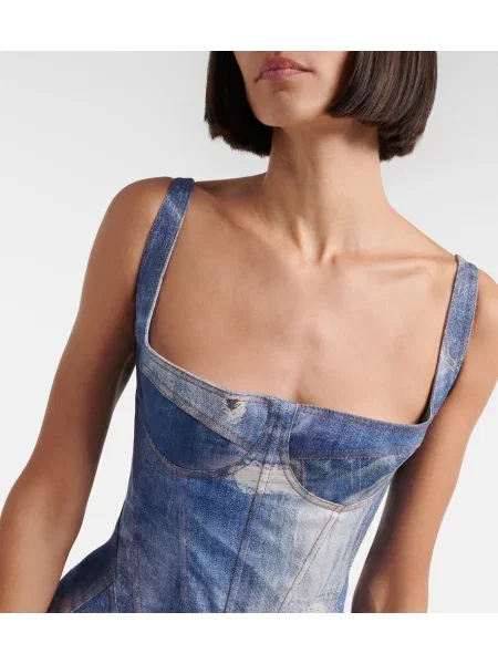 Roberto Cavalli Rochie din denim cu șireturi din dantelă de costum