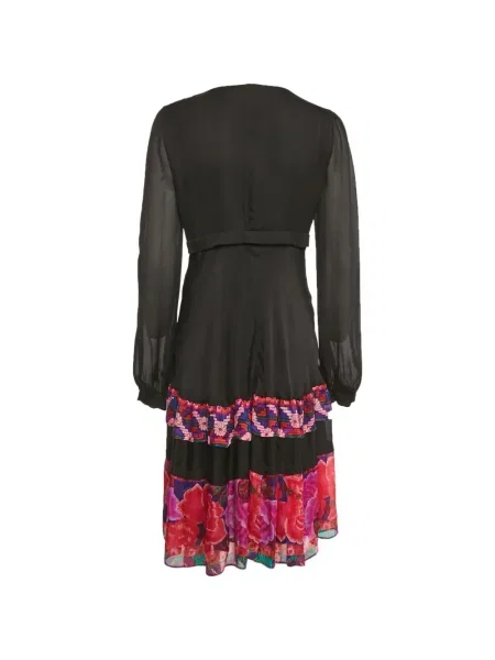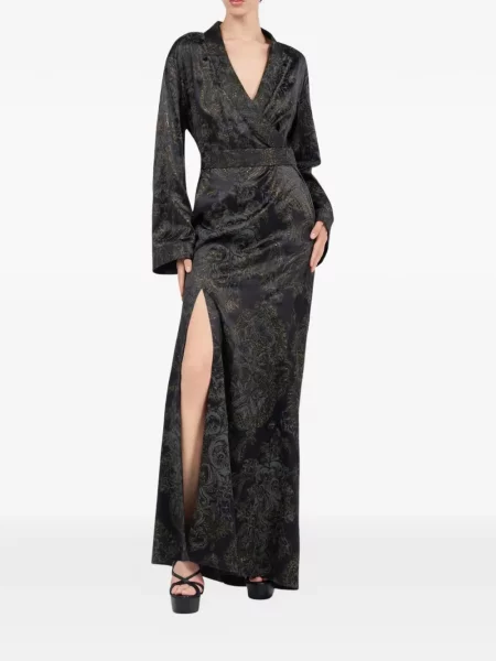 Roberto Cavalli Rochie de mătase cu mâneci lungi cu crăpătură
