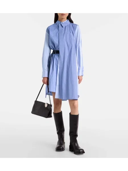 Sacai Rochie tip cămașă cu dungi din jerseu de costum