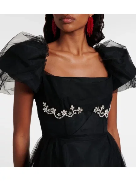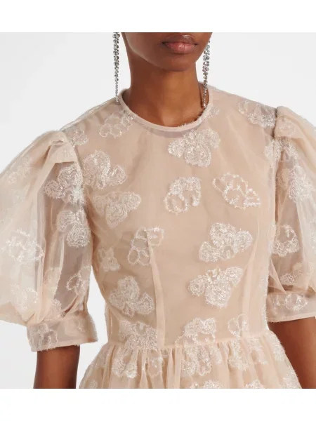 Simone Rocha Rochie midi cu broderie din tul până la genunchi