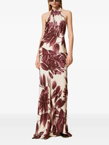 Twinset Rochie maxi cu model floral cu imagine cu gât halter