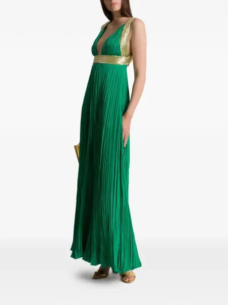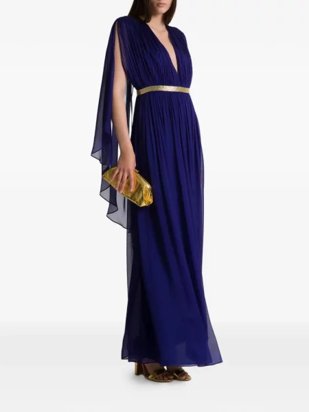 Alberta Ferretti Rochie maxi cu decolteu în V plisată de costum