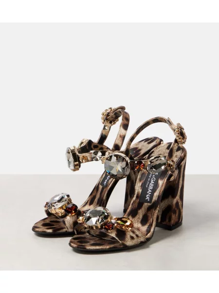 Dolce&gabbana Sandale din satin cu imagine cu model leopard