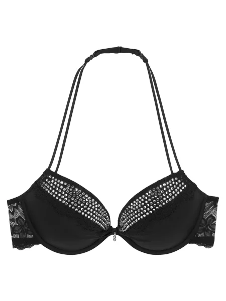 Other Sutien Push-Up Negru-Bej cu Dantelă și Inscripții cu Paiete Elisei
