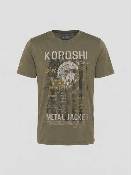 Koroshi Tricou galben închis / metalic / kaki / verde pastel
