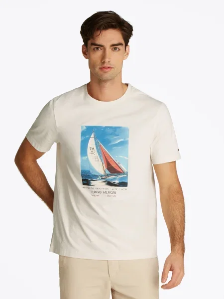 Bej tricouri bărbați Tommy Hilfiger