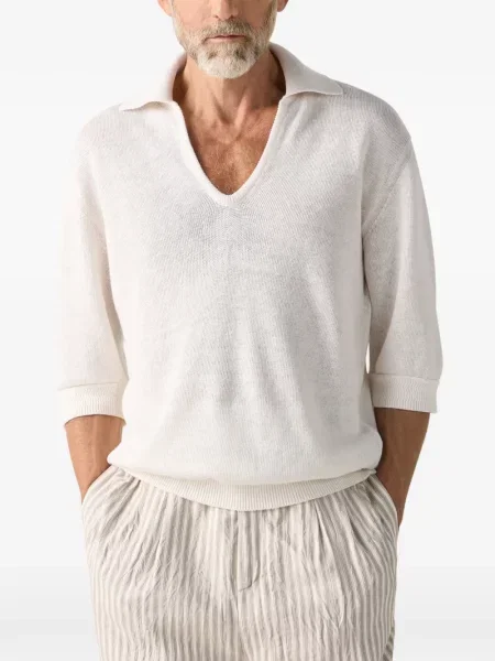 Poziţionarea rămâne clar premium‑casual: linii care transferă din experienţa tailoring şi atenţie la detaliu în fiecare cusătură, cu finisaje discrete şi opţiuni cu monogramă subtilă sau suprafeţe netede. În ofertă apar variante din jersey fin şi blenduri delicate, iar pentru un contrast de croitorie şi proporţii merită comparate şi cămașile Zegna.