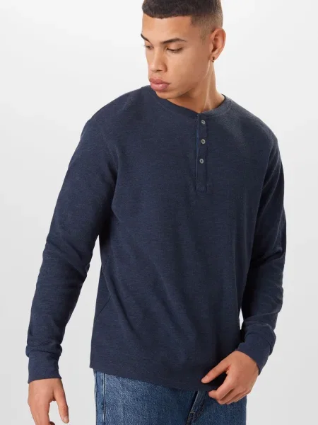 Tricou cu mânecă lungă Henley bleumarin