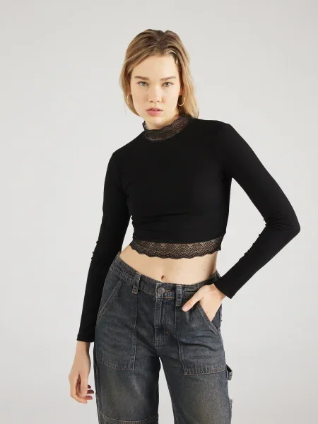 Reserved Tricou cu mânecă lungă și decolteu decorativ