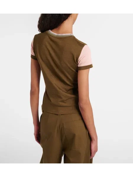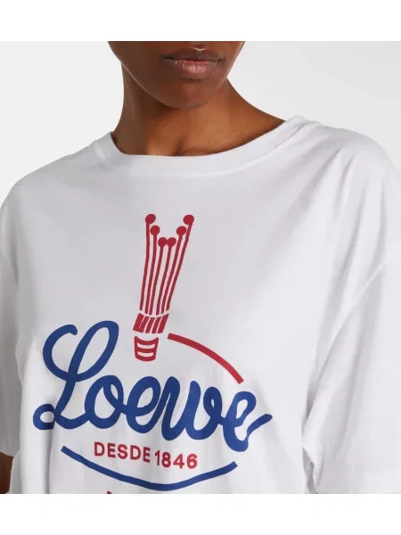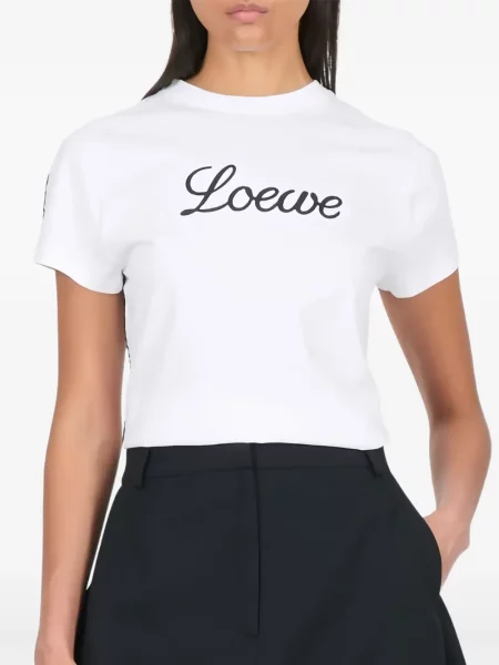 Materialele și finisajele sunt esențiale: tricouri croite cu atenție, broderii și imprimeuri artistice; multe apar ca Tricouri Loewe din bumbac, iar semne vizuale includ anagrama și aplicaţii artizanale. Selecția și referințele pot fi văzute în Îmbrăcăminte damă Loewe.