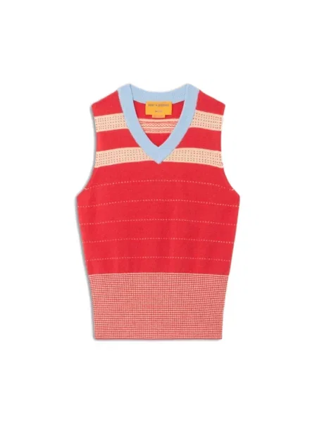 Vestă Guest In Residence cu dungi cu decolteu în V roșu